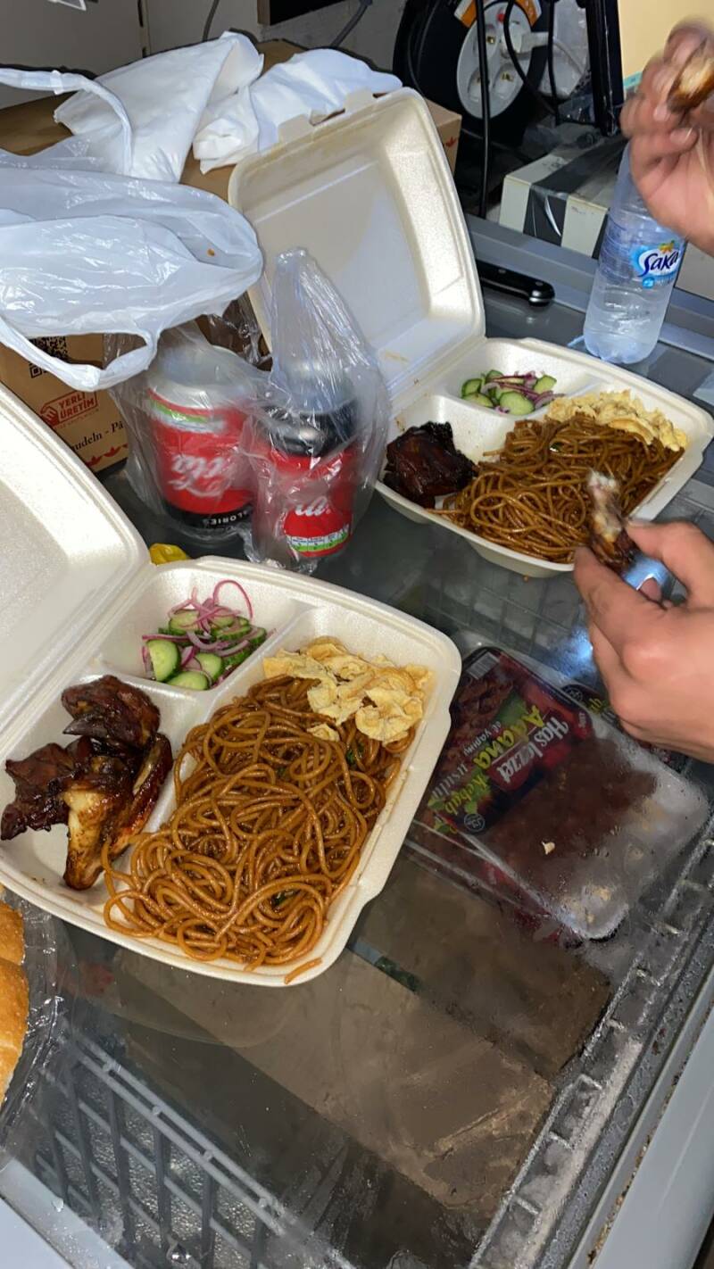 Een klant van catering Deno die het familie pakket Surinaamse BBQ met nasi had besteld,ze vonden het erg lekker