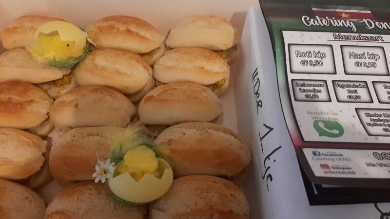 Een klant van catering Deno had lekkere Surinaamse Belegde broodjes besteld.hij vond ze zo lekker dat hij ze allemaal achter elkaar heeft opgegeten en zin had in meer.